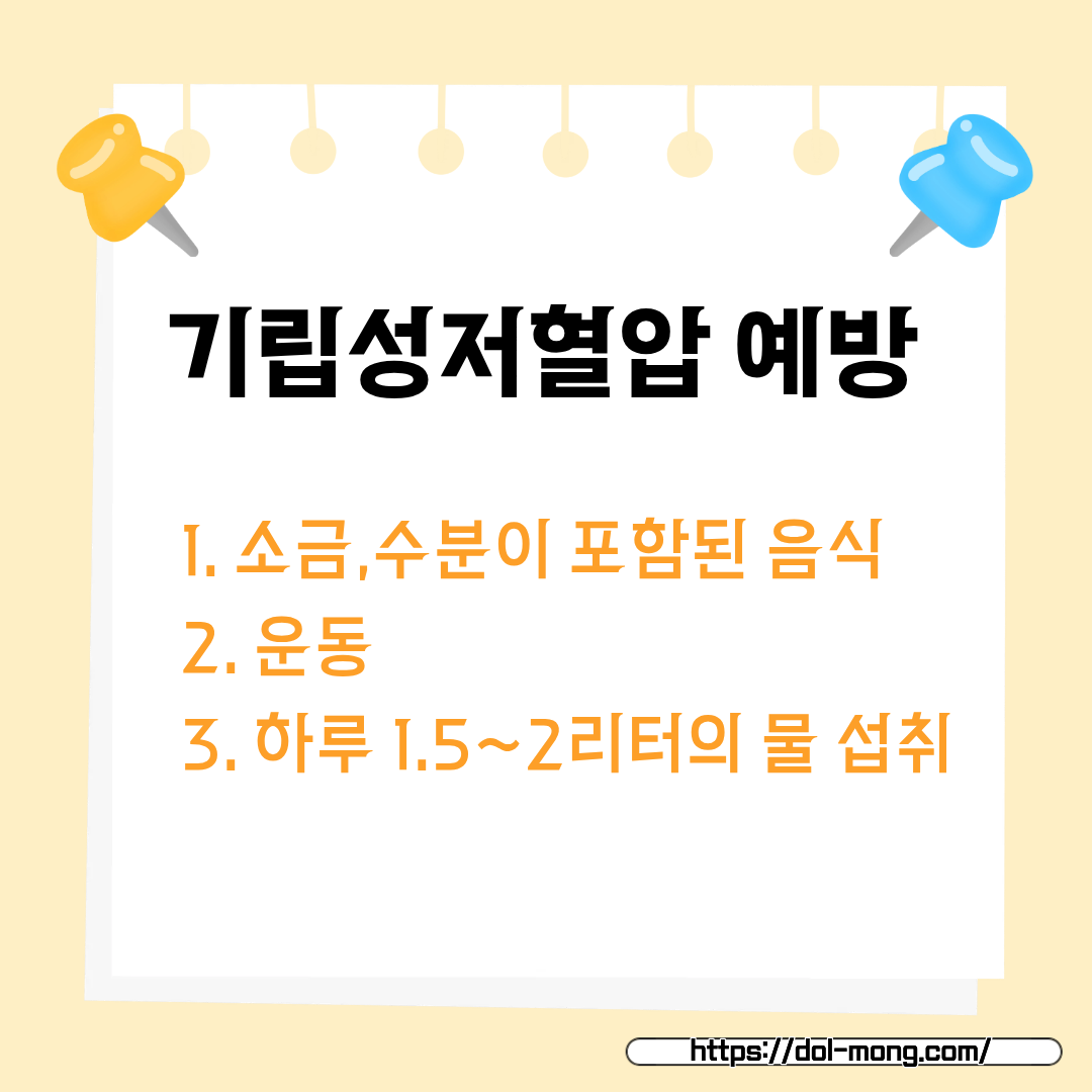 수분 섭취가 부족하면 혈액량이 줄어들어 기립성 저혈압 증상을 유발합니다.