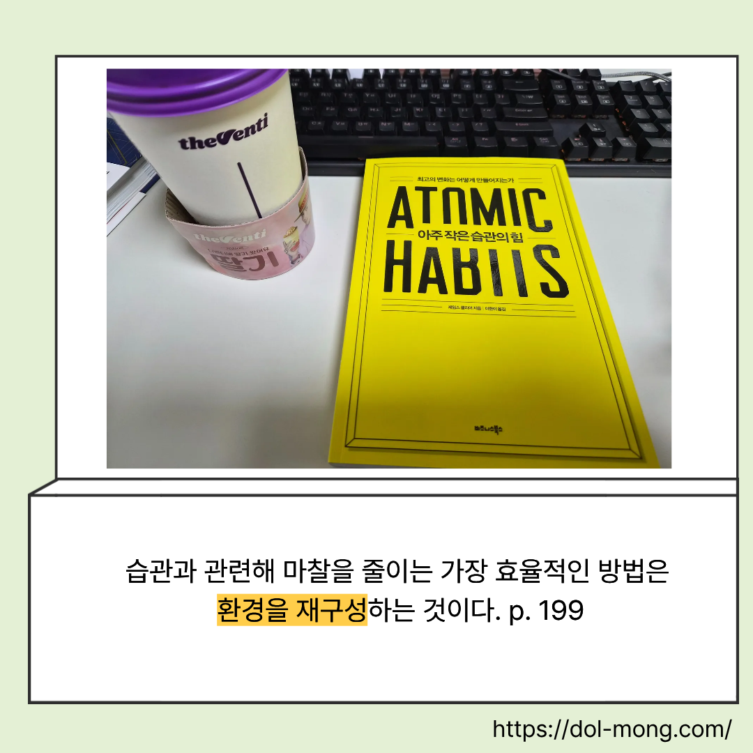 어떤 습관에 필요한 에너지를 적게 만드는 '환경을 재구성' 해야 합니다.
